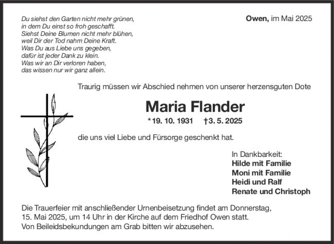 TodesanzeigeVon 6. Mai 2025Kommentar hinterlassen