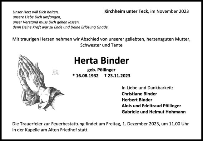 TodesanzeigeVon Benny Kuder28. November 20231 Kommentar