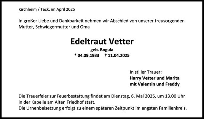 TodesanzeigeVon 3. Mai 20253 Kommentare