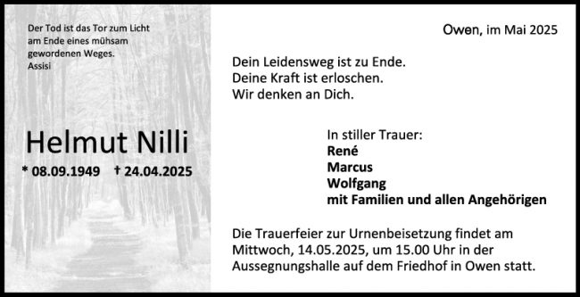 TodesanzeigeVon 3. Mai 2025Kommentar hinterlassen