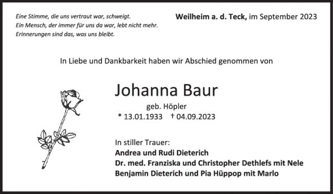 TodesanzeigeVon 17. September 2023Kommentar hinterlassen