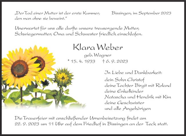 TodesanzeigeVon 23. September 2023Kommentar hinterlassen