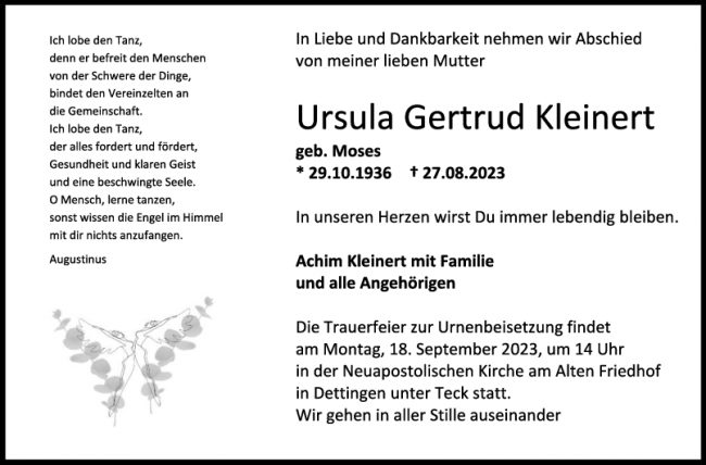 TodesanzeigeVon 14. September 2023Kommentar hinterlassen