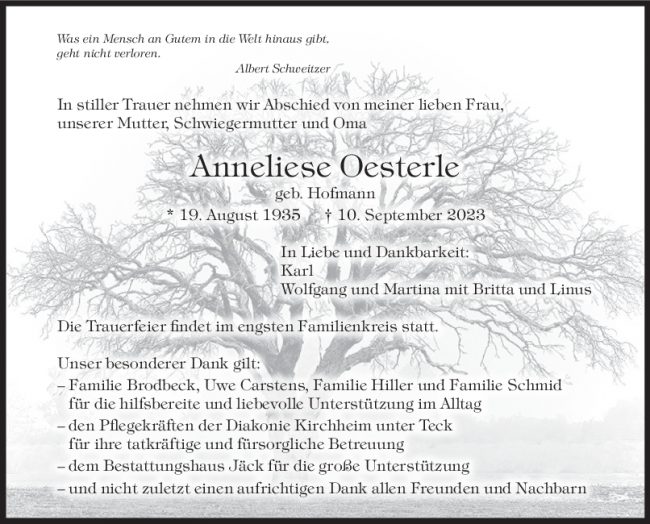TodesanzeigeVon 17. September 2023Kommentar hinterlassen