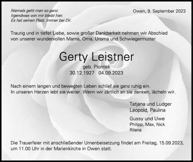 Trauer Gerty Leistner
