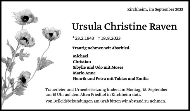 Trauer Ursula Raven
