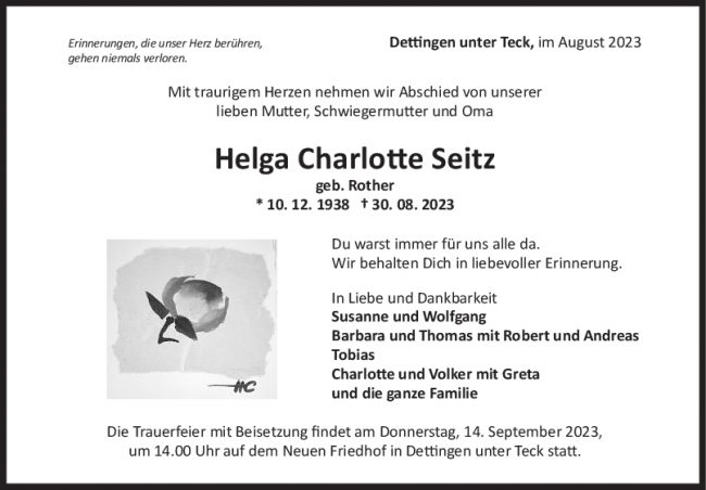 Trauer Helga Charlotte Seitz