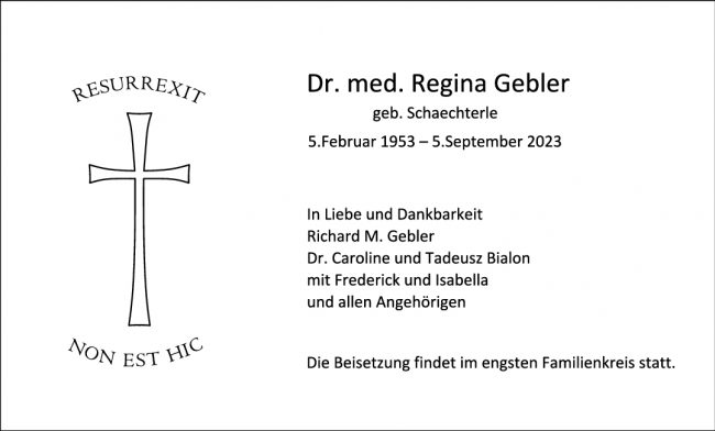 Trauer Regina Gebler