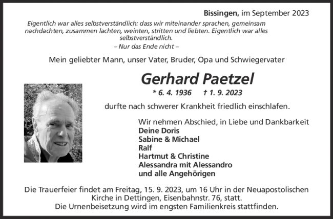 Trauer Gerhard Paetzel