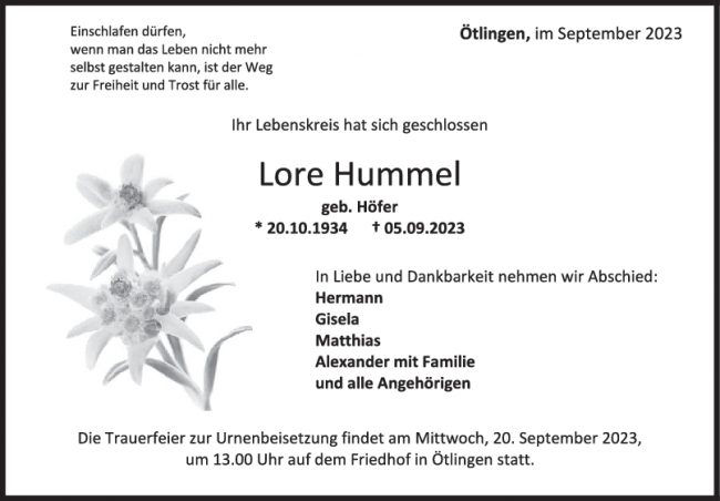 Trauer Lore Hummel