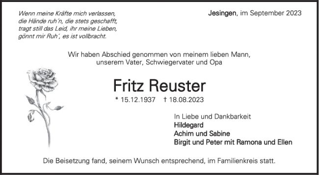 Trauer Fritz Reuster