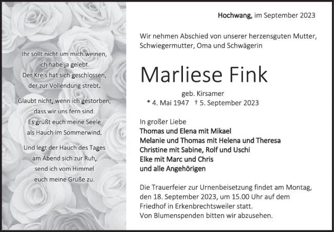 Trauer Marliese Fink