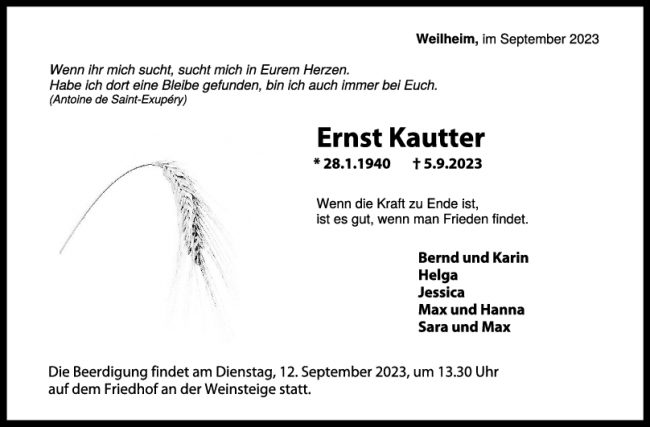 Trauer Ernst Kautter 08/09/2023