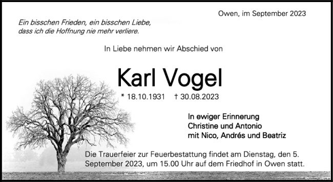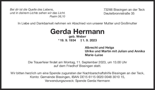 TodesanzeigeVon 6. September 2023Kommentar hinterlassen
