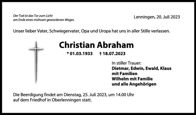 Trauer Christian Abraham 21/07/2023