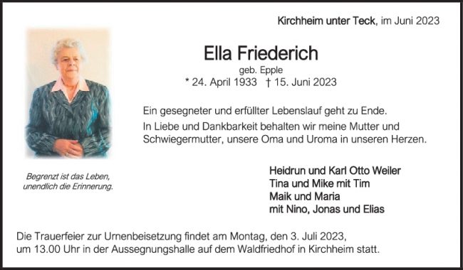 TodesanzeigeVon 1. Juli 20235 Kommentare