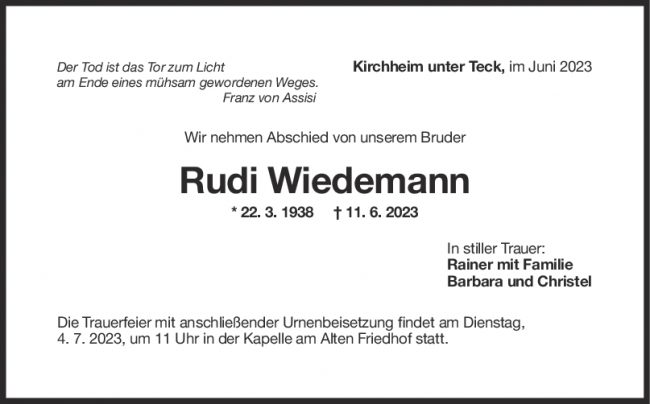TodesanzeigeVon Benny Kuder1. Juli 20231 Kommentar