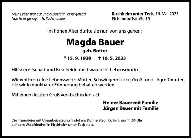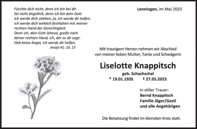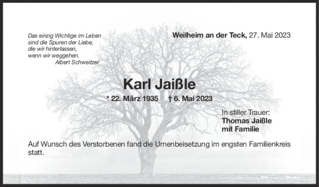 TodesanzeigeVon Benny Kuder31. Mai 20231 Kommentar