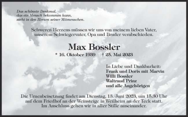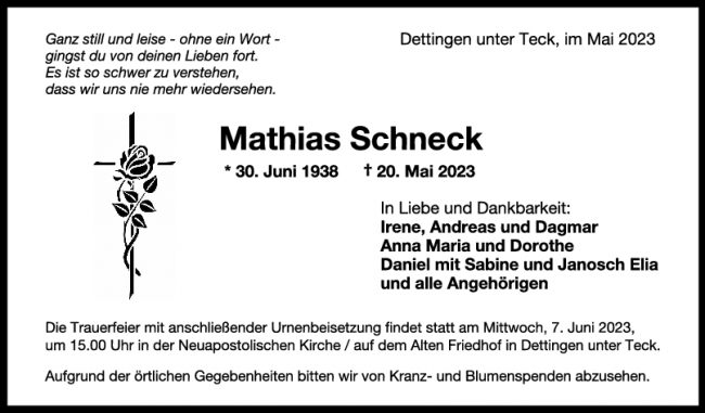 TodesanzeigeVon Benny Kuder30. Mai 20232 Kommentare