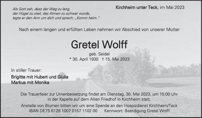 TodesanzeigeVon Benny Kuder24. Mai 20232 Kommentare