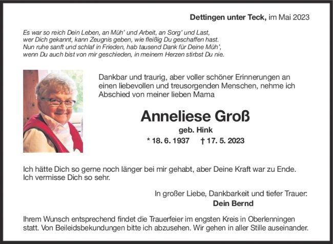 TodesanzeigeVon Benny Kuder28. Mai 20232 Kommentare