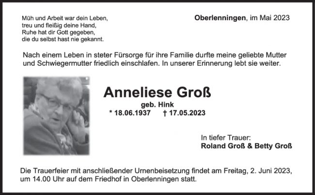 TodesanzeigeVon 28. Mai 20231 Kommentar