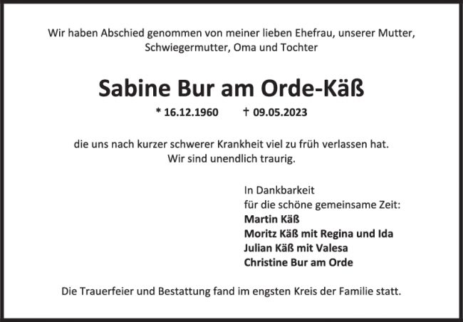 Trauer Sabine Bur am Orde-Käß 23/05/2023