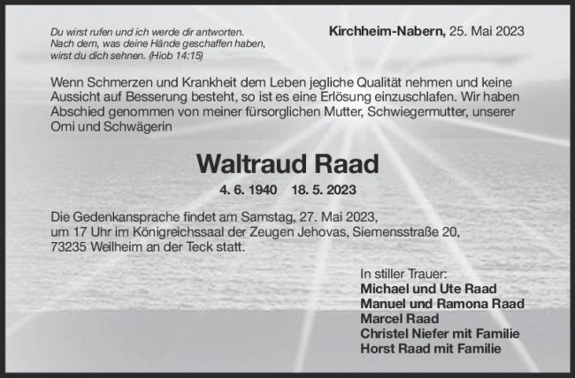 TodesanzeigeVon 22. Mai 20232 Kommentare