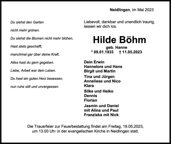 TodesanzeigeVon Benny Kuder18. Mai 20232 Kommentare