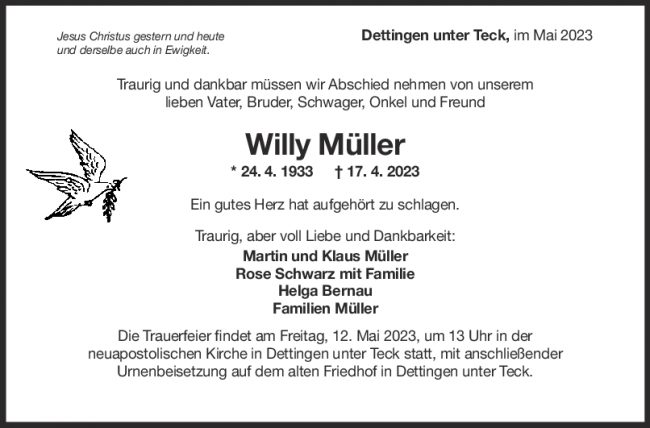TodesanzeigeVon 6. Mai 2023Kommentar hinterlassen