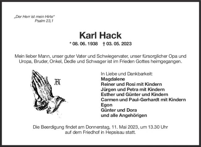 TodesanzeigeVon Benny Kuder6. Mai 20231 Kommentar