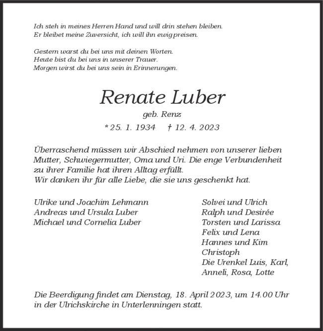 TodesanzeigeVon Benny Kuder17. April 2023Kommentar hinterlassen