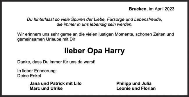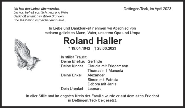 TodesanzeigeVon 15. April 2023Kommentar hinterlassen