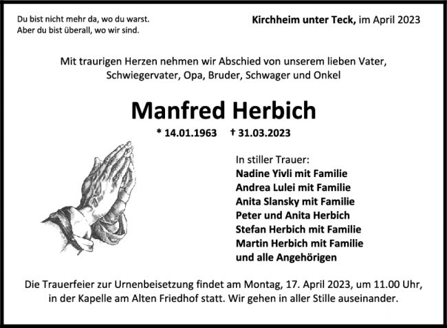 Trauer Manfred Herbich