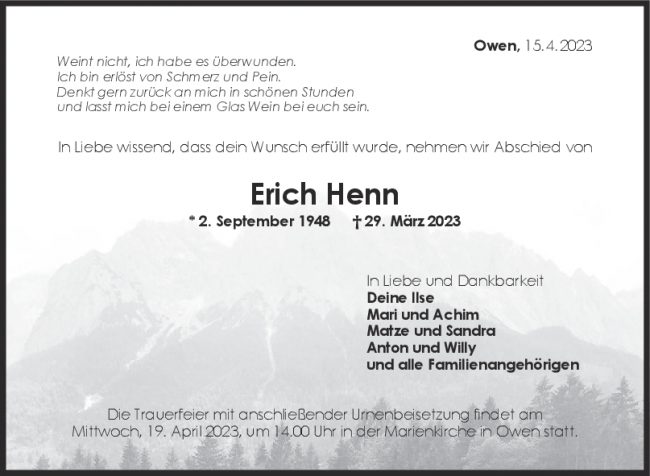 Trauer Erich Henn 15/04/2023