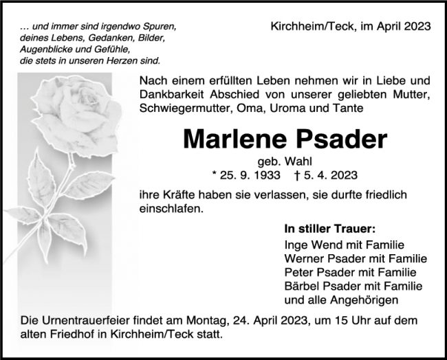 Trauer Marlene Psader