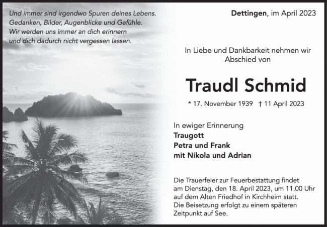 Trauer Traudl Schmid 15/04/2023