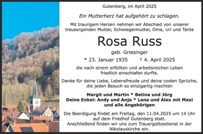 TodesanzeigeVon 10. April 2025Kommentar hinterlassen