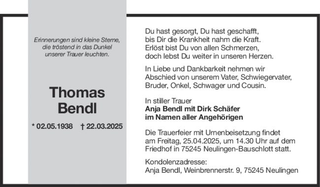 TodesanzeigeVon Benny Kuder7. April 2025Kommentar hinterlassen