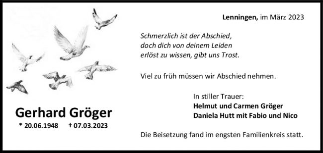 Trauer Gerhard Gröger 18/03/2023