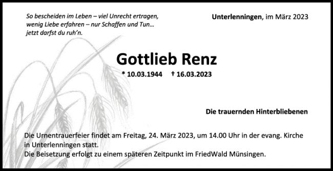 Trauer Gottlieb Renz