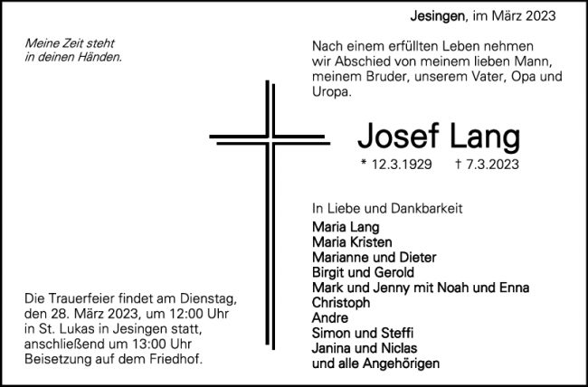 Trauer Josef Lang