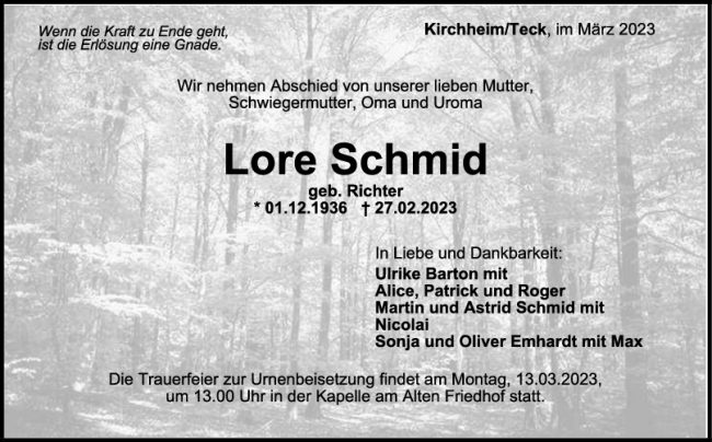 TodesanzeigeVon Benny Kuder4. März 20231 Kommentar