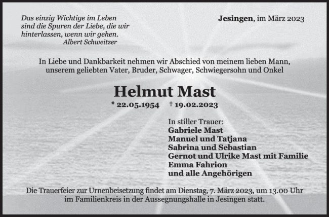 TodesanzeigeVon 4. März 2023Kommentar hinterlassen