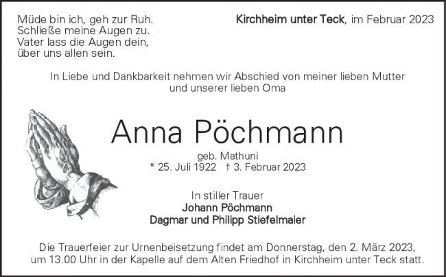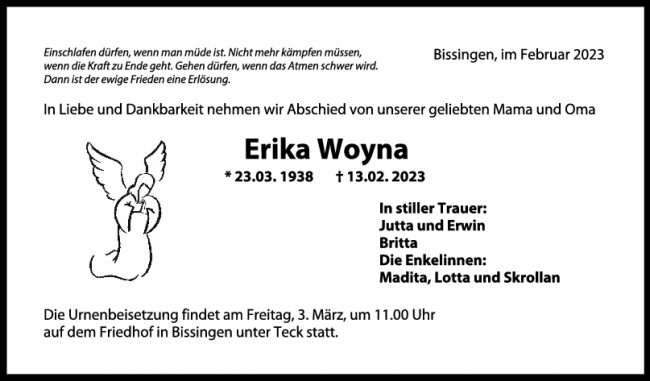 TodesanzeigeVon Benny Kuder26. Februar 2023Kommentar hinterlassen