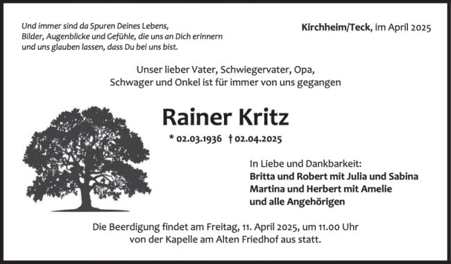 TodesanzeigeVon Benny Kuder5. April 20252 Kommentare