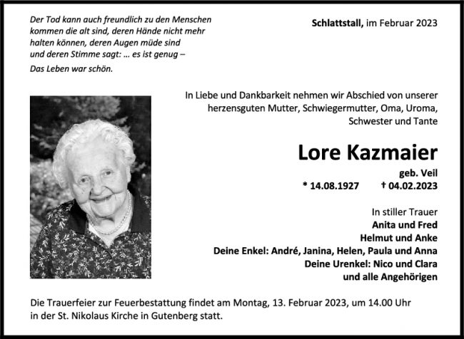 Trauer Lore Kazmaier