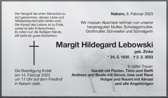 Trauer Margit Hildegard Lebowski 09/02/2023