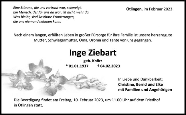 Trauer Inge Ziebart 08/02/2023