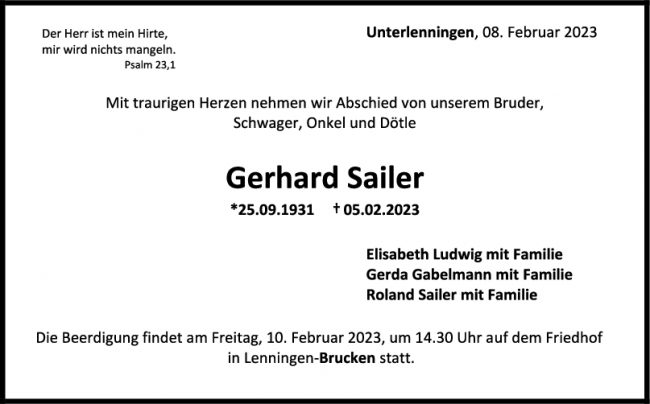 Trauer Gerhard Sailer 08/02/2023